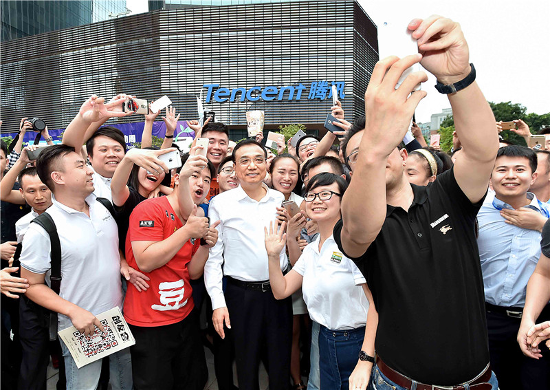 2016年10月12日,李克強(qiáng)在深圳全國“雙創(chuàng)”周活動(dòng)主會(huì)場深圳灣創(chuàng)業(yè)廣場與年輕創(chuàng)業(yè)者合影留念。(資料圖)